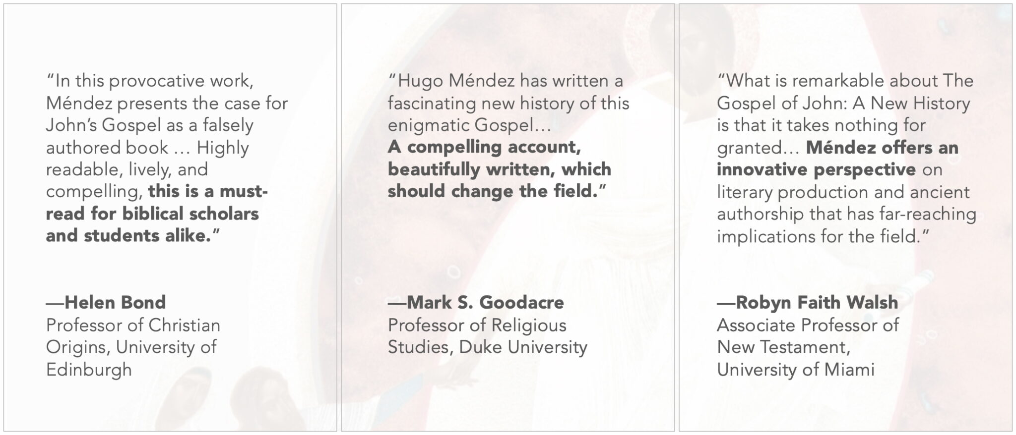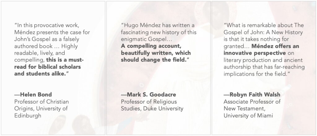 The biblical Gospel of John casts itself as a memoir of “the disciple whom Jesus loved,” a mysterious figure who allegedly watched Jesus die on the cross and who stepped into his empty tomb. But in this groundbreaking study, Hugo Méndez argues that the text is something else: a falsely authored gospel that inspired a rich tradition of disguised writing.